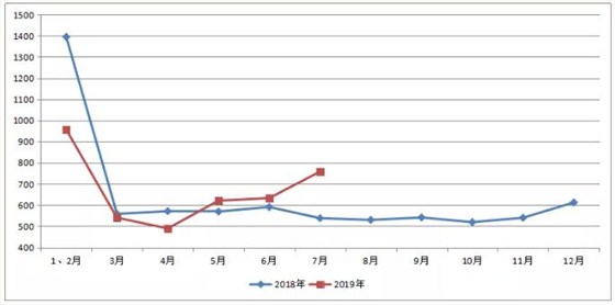 按每月規(guī)模企業(yè)統(tǒng)計:1-7月中國規(guī)模以上工業(yè)企業(yè)塑料制品產(chǎn)量累計為3998.8萬噸,同比下降5.3%;其中,7月份產(chǎn)量為758萬噸,環(huán)比增長19.73%,同比增長40.89%。