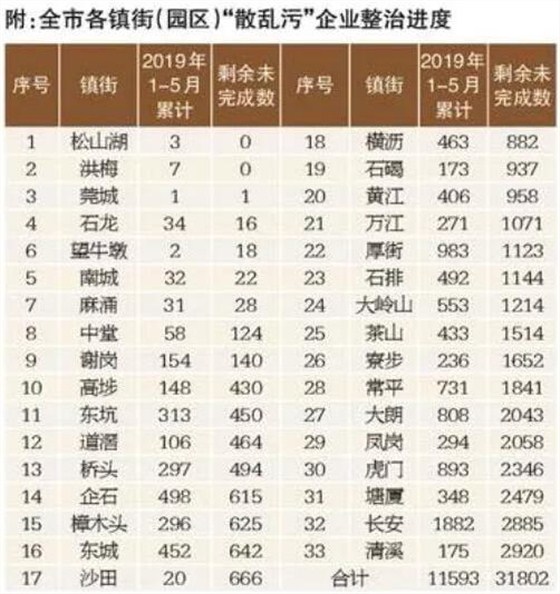 待整治“散亂污”企業(yè)中,清溪、長安、塘廈、虎門、鳳崗、大朗、常平、寮步、茶山、大嶺山、石排、厚街、萬江等13個鎮(zhèn)街均有上千家“散亂污”企業(yè),整治形勢還比較嚴峻。