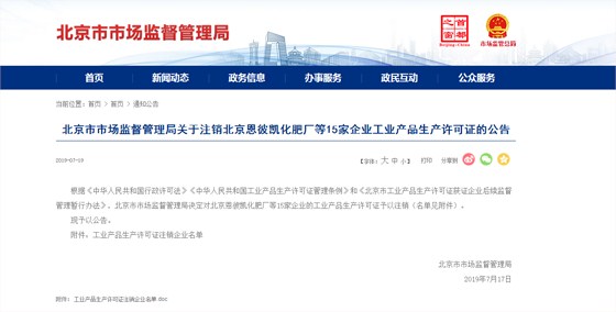 近日,北京市場監(jiān)管局發(fā)布《關(guān)于注銷北京恩彼凱化肥廠等15家企業(yè)工業(yè)產(chǎn)品生產(chǎn)許可證的公告》稱,根據(jù)《中華人民共和國行政許可法》《中華人民共和國工業(yè)產(chǎn)品生產(chǎn)許可證管理?xiàng)l例》和《北京市工業(yè)產(chǎn)品生產(chǎn)許可證獲證企業(yè)后續(xù)監(jiān)督管理暫行辦法》,北京市市場監(jiān)督管理局決定對北京恩彼凱化肥廠等15家企業(yè)的工業(yè)產(chǎn)品生產(chǎn)許可證予以注銷(名單見附件)。其中包括三家包裝企業(yè)。
