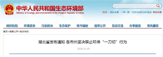 11月5日,湖北省委辦公廳、省政府辦公廳下發(fā)通知,就禁止環(huán)保“一刀切”行為,做好生態(tài)環(huán)保邊督邊改工作提出明確具體要求。各地積極貫徹落實(shí),并堅(jiān)決禁止環(huán)保“一刀切”行為。