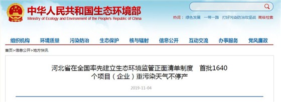 在今年10月份,河北省公布在全國率先建立生態(tài)環(huán)境監(jiān)管正面清單制度,首批1640個(gè)項(xiàng)目(企業(yè))重污染天氣不停產(chǎn)!對于造紙業(yè)、包裝印刷業(yè)來說,能否納入正面清單,達(dá)標(biāo)排放、自律減排、污染治理水平領(lǐng)先是關(guān)鍵。通過現(xiàn)場核查評估,要確保清單內(nèi)的企業(yè),無論是生產(chǎn)工藝,還是污染治理,都達(dá)到行業(yè)標(biāo)桿水平。