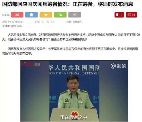 今年的國(guó)慶大閱兵正在緊張籌備之中。
