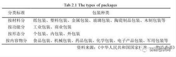 表2.1 包裝品種類