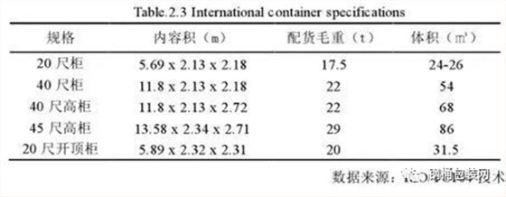 表2.3 集裝箱國際規(guī)格