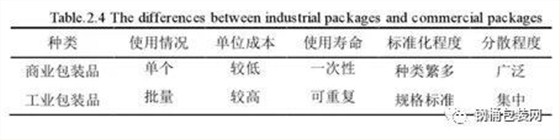 綜合以上分析,可以看出商業(yè)包裝品和工業(yè)包裝品在回收物流方面的不同,如使用批量、單位成本、標(biāo)準(zhǔn)化程度等,如下表2.4所示: