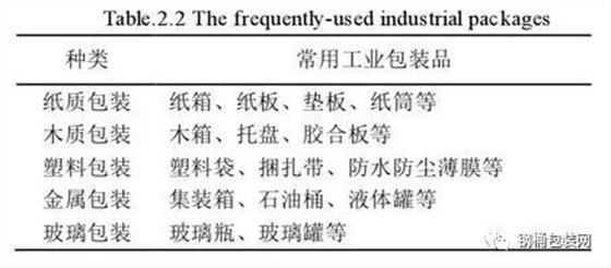 表2.2 常用工業(yè)包裝品