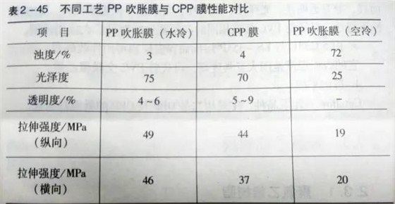 附:不同工藝PP吹脹膜與CPP膜性能對(duì)比