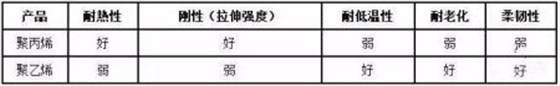4 從耐老化角度來(lái)看,聚丙烯的耐老化性要弱于聚乙烯,聚丙烯的結(jié)構(gòu)和聚乙烯類似,但是由于其存在一個(gè)甲基構(gòu)成的側(cè)支鏈,所以更易在紫外光和熱能作用下氧化降解。在日常生活中最常見(jiàn)的容易老化的聚丙烯制品就是編織袋,長(zhǎng)時(shí)間在太陽(yáng)下照射編織袋很容易破裂。事實(shí)上,聚乙烯耐老化性雖然高于聚丙烯,但是相較于其他原料,它的這種性能也不是非常突出,因?yàn)樵诰垡蚁┓肿又泻猩倭侩p鍵和醚鍵,其耐候性不好,日曬、雨淋也會(huì)引起老化。