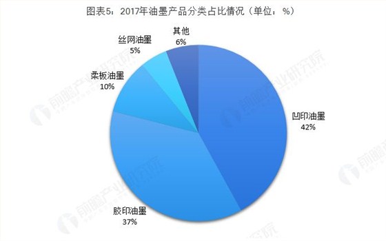 42%,膠印油墨占37%,柔版油墨占10%5%,其他(噴墨及油墨輔助劑等)占比約6%。