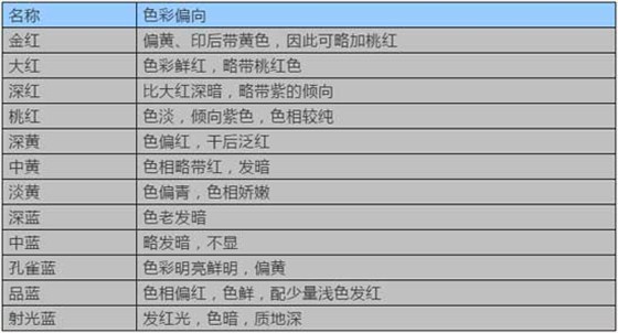 若調墨時要調整色相,同樣可以利用補色來解決,如當藍墨偏紅需改變?yōu)槠S色調時,只要在油墨中加入少量綠墨,因為油墨反射出來的紅光和綠光相混合就是黃光。
