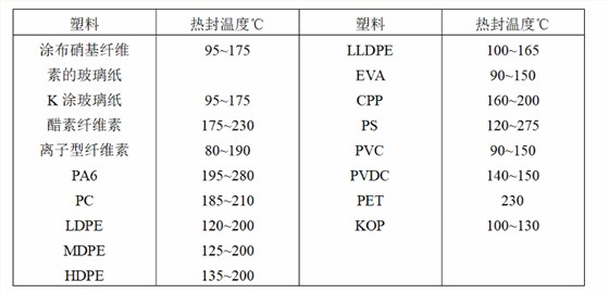 注:上述表中的薄膜均指流延膜或吹脹膜, 雙向拉伸膜不能熱封制袋,涂布一層可熱封材料后才能熱封,如:KOP是指涂布PVDC的OPP膜。