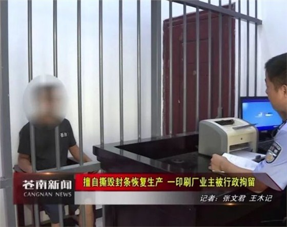 在縣拘留所,印刷廠業(yè)主對擅自撕毀封條的行為懊悔不已:“因為一批貨趕得急,就想著把剩下的料做完,沒想到還會來檢查。這個違法成本很高,得不償失。”