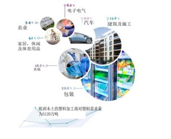 按終端應(yīng)用領(lǐng)域劃分,歐洲包裝行業(yè)對塑料的需求量最大,占39.9%,其次為建筑行業(yè),占19.8%。