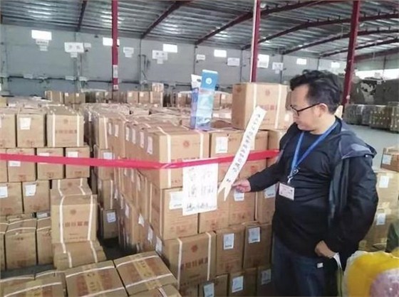 無(wú)獨(dú)有偶,922日,執(zhí)法人員又隨機(jī)抽查了幾家物流公司,在位于和平大道的一物流公司,發(fā)現(xiàn)違規(guī)使用建國(guó)70周年標(biāo)識(shí)白酒20件。